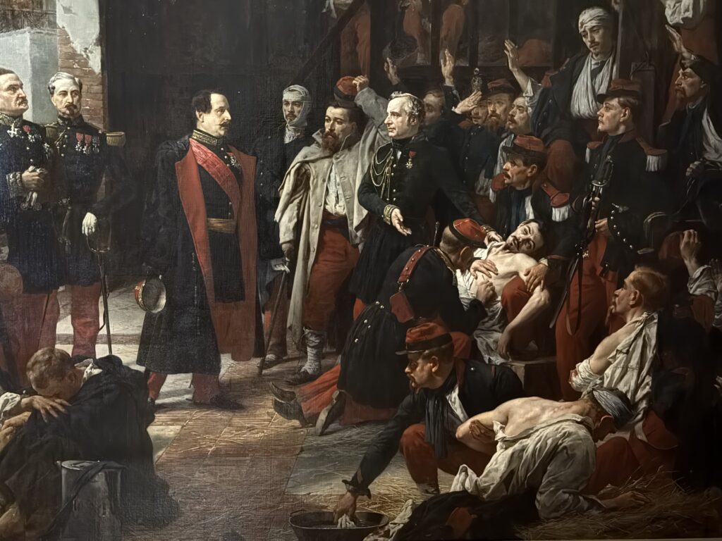 L’Empereur Napoléon III visitant les blessés de l’armée d’Italie aux ambulances de Voghera. Jules Rigo(1859)