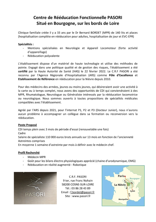 ANNONCE N°4: médecin MPR en centre de rééducation fonctionnelle / Bourgogne