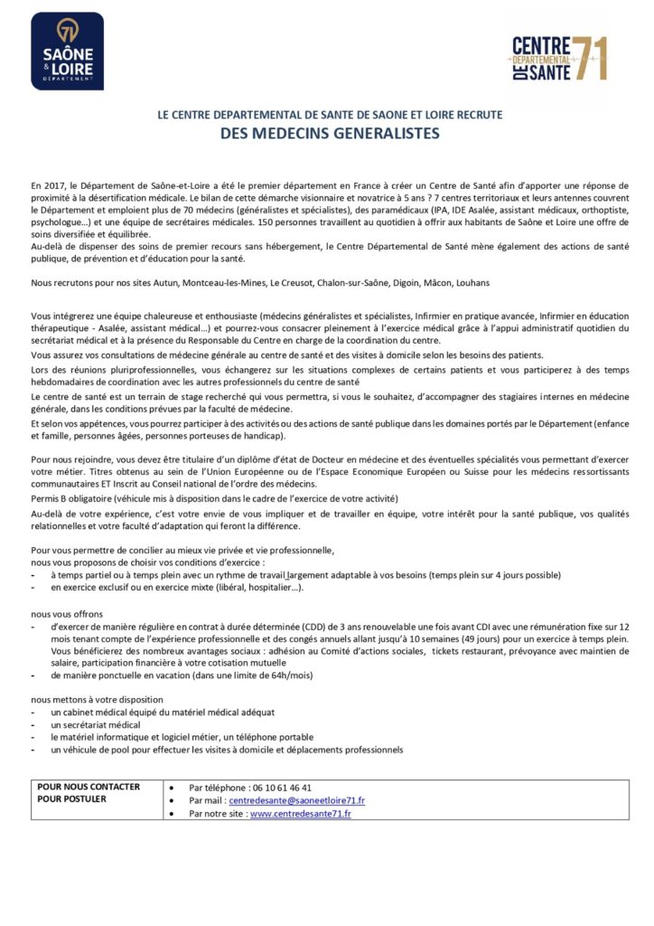 ANNONCES MEDECINS GENERALISTES EN SAONE ET LOIRE