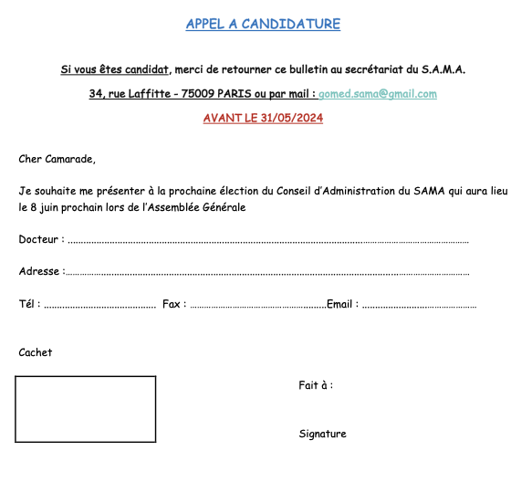 L’Assemblée Générale du SAMA se tiendra donc en présentiel le :