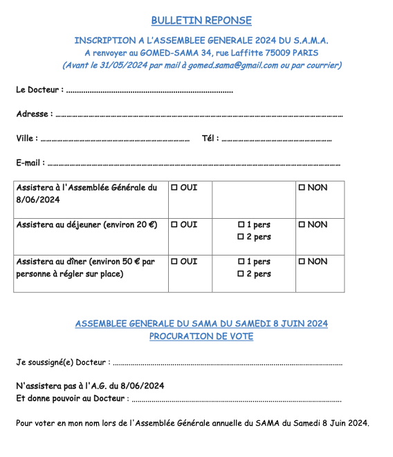 Bulletin à remplir et à envoyer à GOMED-SAMA – 34, rue Laffitte – 75009 PARIS.
